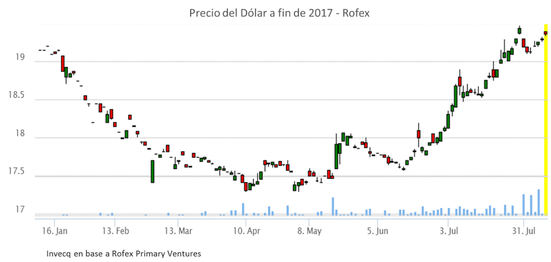 Ya quedan menos de 5 meses para fin de año y, por lo tanto, cada vez hay menos margen para desvíos respecto a la diferencia entre el valor futuro y el valor del spot en el momento “t” (dic-2017). Pero las opiniones están dividas entre los especialistas ya que se distanciaron de lo que opera el mercado propiamente dicho. Es así como, desde nuestra visión, existe la posibilidad de un dólar en la zona de $18,50 ante determinado escenario electoral favorable al oficialismo.