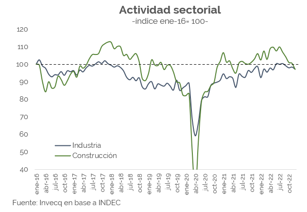 A su vez, la producción industrial manufacturera también se resintió en diciembre. El IPI manufacturero en su medición desestacionalizada que elabora el INDEC retrocedió un 1,2% mensual en diciembre (-2,7% i.a.) y anotó 4 meses a la baja en el segundo semestre del 2022, con una caída acumulada en el semestre del 3,1%. No obstante, finalizó el 2022 con un nivel promedio anual 4,3% superior al del 2021.