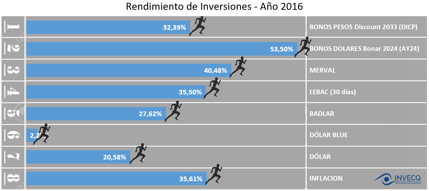 La gran incógnita en los hombres de mercado durante el año 2016 fue acerca de si habría que posicionarse en inversiones dolarizadas o de tasas de interés en pesos. Se trataba de un año muy particular en materia económica, producto del cambio de gobierno y del respectivo cambio en el modelo económico, lo cual obligó a realizar un muy buen análisis de situación y alternativas a la hora de realizar inversiones en pos de asegurarse una buena rentabilidad.