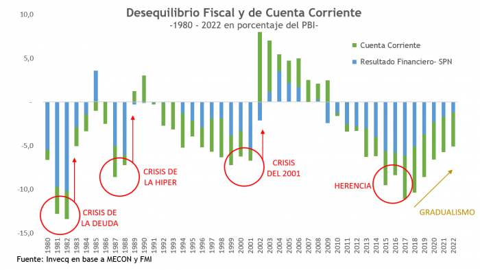 El verdadero desafío sigue estando en el desequilibrio macro de largo plazo: el frente fiscal y el frente externo. Son los déficits gemelos, frutos de la herencia, pero ahora también de la gestión. Contener dicho desequilibrio con financiamiento limitado y en un contexto recesivo es más complejo.