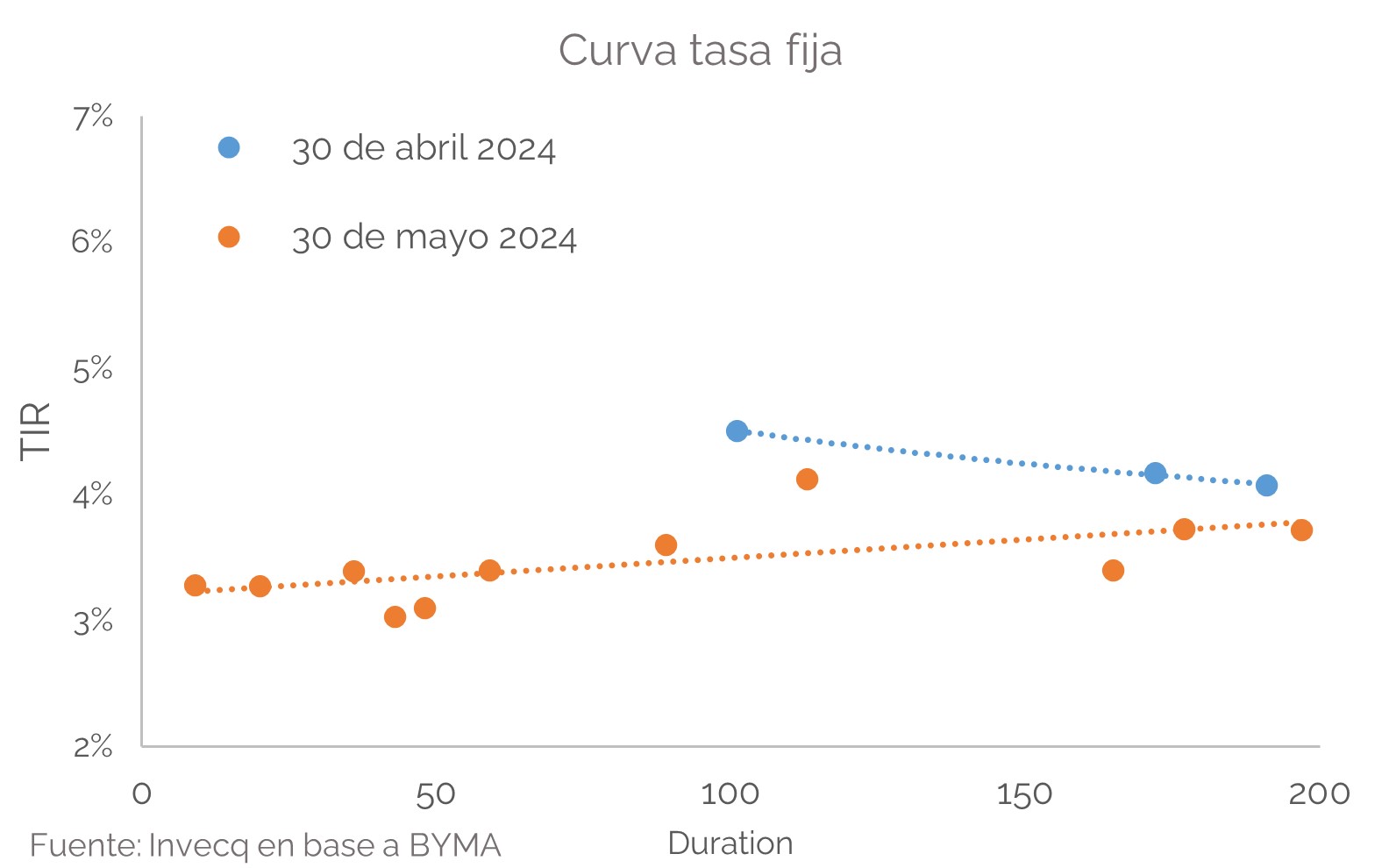 Sumado a lo anterior, con el objetivo de continuar el saneamiento del balance del BCRA, durante el viernes se aprobó la compra por parte del Tesoro de títulos emitidos por la entidad al Banco Central por un monto de $ 552.600 millones, que se eliminarán de los registros de deuda pública. Los próximos vencimientos abultados llegan en el mes de julio donde hay vencimientos por poco menos de $3 billones en bonos DUALES, que posiblemente intente reemplazar por instrumentos en tasa fija.