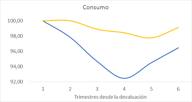 Con impronta futbolística podemos analizar algunas variables para ver qué economía tuvo mejor desempeño. Para realizar este ejercicio consideramos en cada caso seis trimestres corridos, escogiendo el primer trimestre en el mes donde se produce la devaluación.
