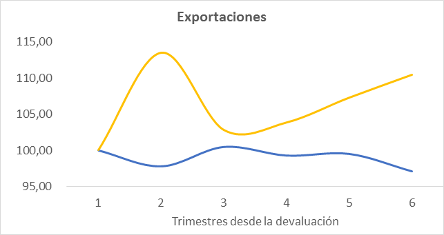 El motor de las exportaciones si está funcionándole a Cambiemos. A seis trimestres de la devaluación, las exportaciones ya crecieron más de 10%. En el caso kirchnerista, para el mismo periodo, todavía seguían en caída.