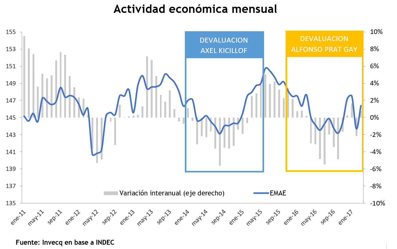 Para dilucidar esta cuestión, vale la pena comparar la performance de la economía argentina en los bienios 2014-2015 contra el 2016-2017. Ambos casos están signados por el mismo proceso: Devaluación-Crisis-Recuperación (Ver: Lenta pero firme, la recuperación se consolida).